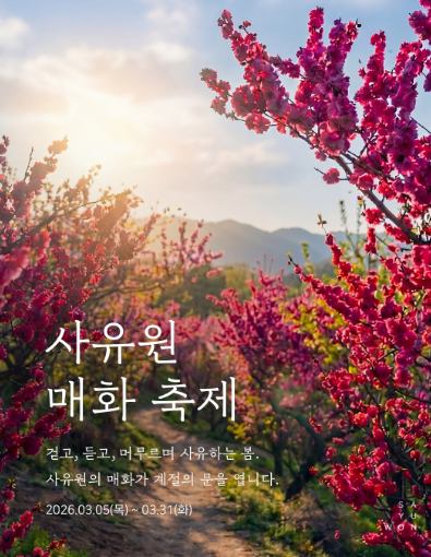: 3월 4일부터 3월 31일까지 사유원 매화 축제가 있으며, 이외도 향기 명상 프로그램인 사유의 향 요가 프로그램이